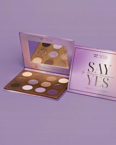Say Yes Party Edition to kontynuacja bestsellerowej palety Say Yes. To kompozycja starannie dobranych kolorów, tak abyś mogła stworzyć zarówno dzienny, jak i wieczorowy makijaż. Obok klasycznych brązów znajdziesz w niej również fiolety, które idealnie sprawdzą się w makijażu wieczorowym oraz ślubnym. Dzięki metalicznym cieniom uzyskasz piękny połysk oraz spektakularny efekt. Cienie są tak skomponowane, aby łatwo się blendowały oraz idealnie łączyły ze sobą.