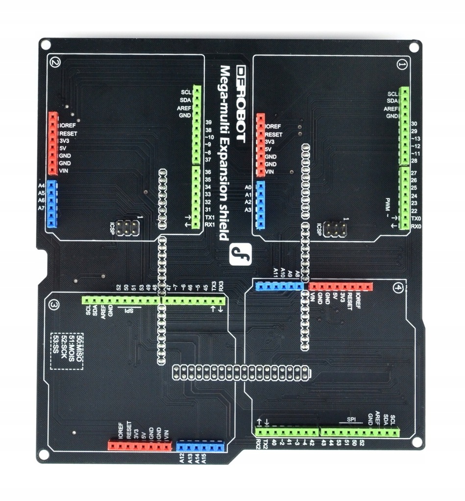 Rozwiń swoje pomysły projektowe dzięki tarczy rozszerzenia IO dla Arduino Mega/DUE. Kompatybilna z Mega1280/2560/ADK, obsługująca 4 ekranów. Zastosowania są różnorodne, od przyrządów do rysowania po prototypowanie platform robotycznych 4WD i druku 3D.