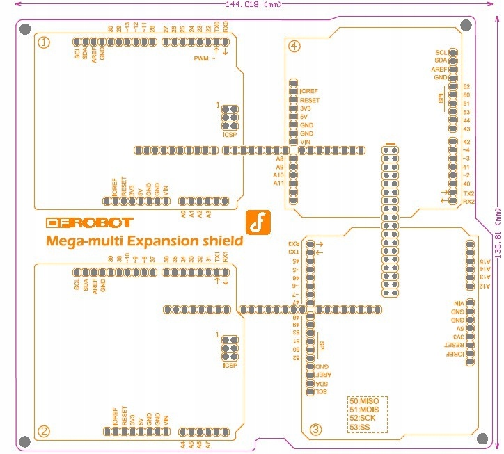 - Arduino Mega/Due Multi-expansion shield umożliwia podłączenie 4 różnych ekranów jednocześnie. Wszystkie kołki we/wy marki Mega board są rozszerzone, dzięki czemu można podłączyć co najmniej 4 osłony i nie martw się już o konflikt we/wy. Co sprawia, że Twój projekt jest czysty i schludny, dzięki kolejnym kable. Rozwiń swój pomysł na projekt dzięki ekranowi rozszerzającemu Mega We/Wy.
