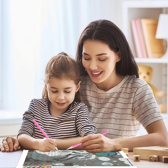 ❤️ Rozwój umiejętności: Haft diamentowy może pomóc w rozwoju koordynacji ręka-oko, koncentracji i zdolności motorycznych.