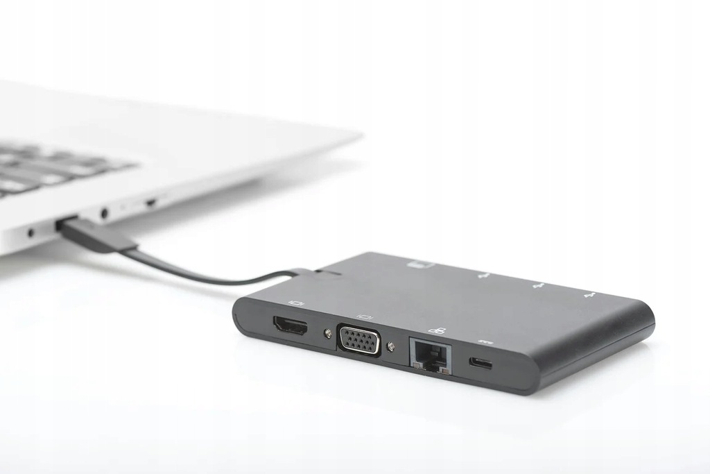 Digitus uniwersalna podróżna stacja dokująca, USB Type-C™. Technologia łączności: Przewodowa, Interfejs hosta: USB 3.2 Gen 1 (3.1 Gen 1) Type-C, Maksymalne zasilanie USB: 100 W. Prędkość transferu danych przez Ethernet LAN: 10,100,1000 Mbit/s. Kolor produktu: Czarny, Obsługiwane typy kart pamięci: MMC, MicroSD (TransFlash), MicroSDXC, SD, Szybkość przesyłania danych: 5 Gbit/s. Maks. rozdzielczość: 3840 x 2160 px. Rodzaj zasilania: USB