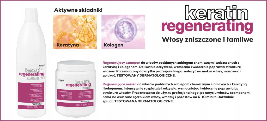 - KERATYNA: regeneruje włosy i wzmacnia ich strukturę