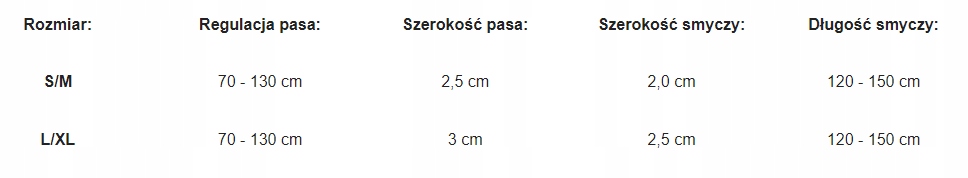 Rozmiar: Regulacja pasa: Szerokość pasa: Szerokość smyczy: Długość smyczy: