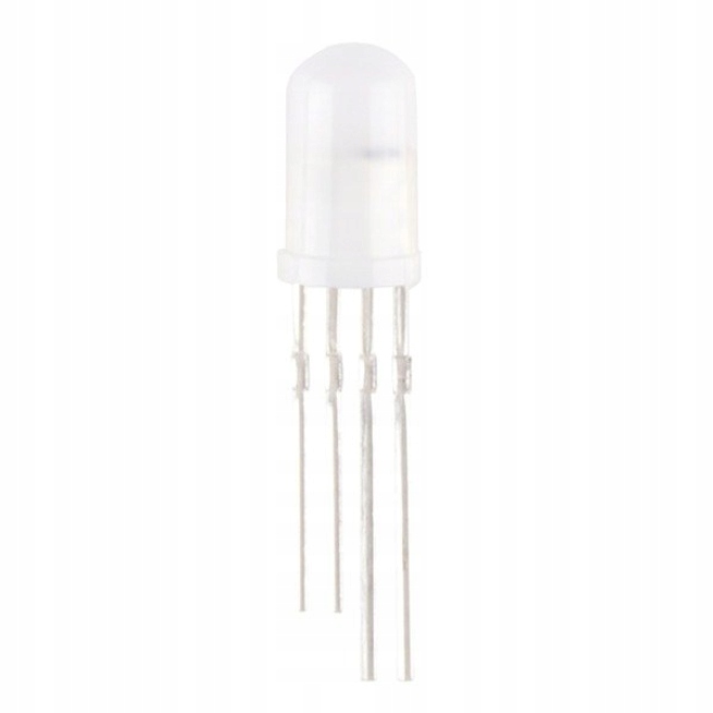 Dioda LED rgb matowa, matowa 5 mm ze wspólną anodą, prąd 22mA na kolor. Z powodzeniem można zastosować w arduino jako dioda kontrolna led.