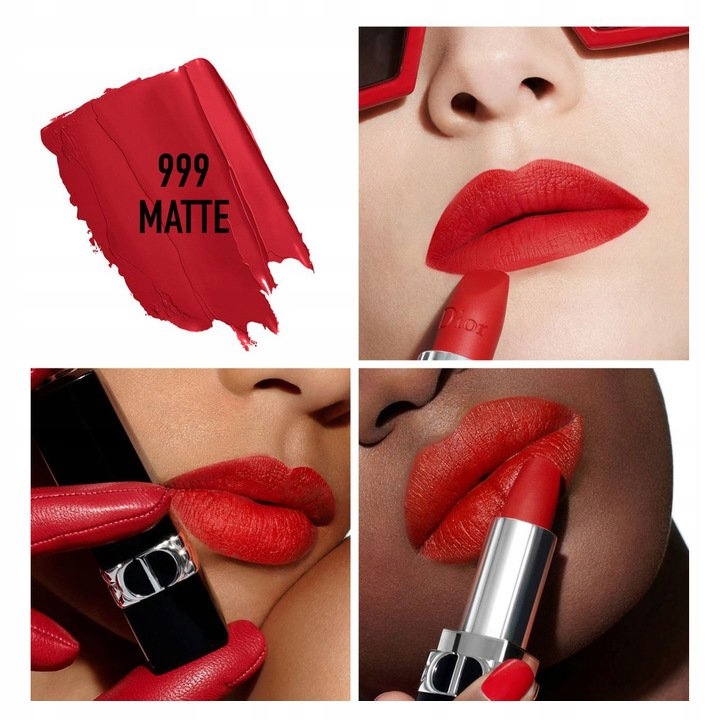 - 999 Velvet: ponadczasowy i zmysłowy szkarłat, którego nazwa pochodzi od dwóch pierwszych pomadek Christiana Diora – 9 oraz 99. Teraz dostępny w 4 wykończeniach Rouge Dior