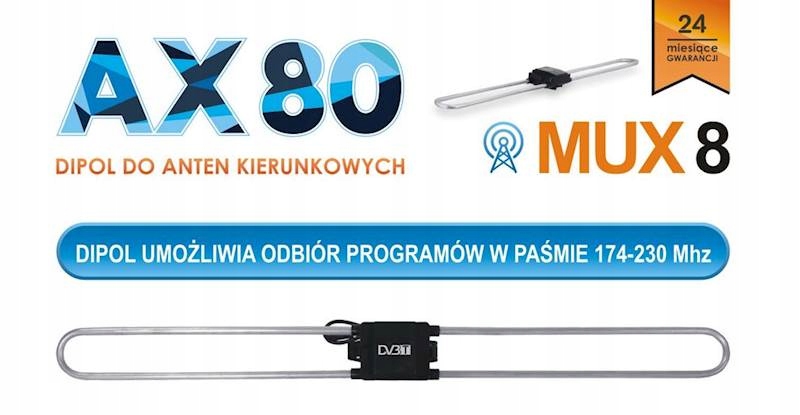 Dipol AX 80 to produkt przeznaczony do rozbudowy zestawu antenowego celem odbioru kanałów w paśmie 174-230 MHz, MUX 8.