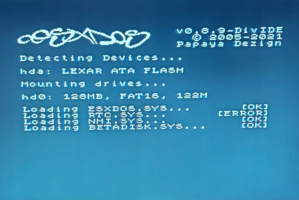Aby DivIDE dobrze działał do karty trzeba wgrać pliki konfiguracyjne i startowe esxDOS v0.8.9, które trzeba pobrać z sieci.