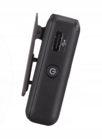 Nadajnik został wyposażony w praktyczny klips, który umożliwia wygodne przypięcie urządzenia do ubrania lub innego przedmiotu.