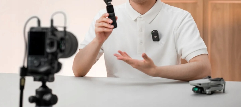 Bez przeszkód nagrywaj materiały w niewielkim studio. W skład zestawu wchodzą 1 nadajnik i mikrofon, które obsługują doskonały dźwięk. Nagrywaj dźwięk tak doskonały, jak Twoje filmy. DJI Mic Basic pozwala uzyskać krystalicznie czyste brzmienie i obsługuje 1-kanałowe nagrywanie o zasięgu nawet 250 m. Wystarczy włączyć mikrofon i podłączyć go do kamery, aby cieszyć się najwyższą jakością audio. DJI Mic Basic to idealne narzędzie dla wymagających twórców!