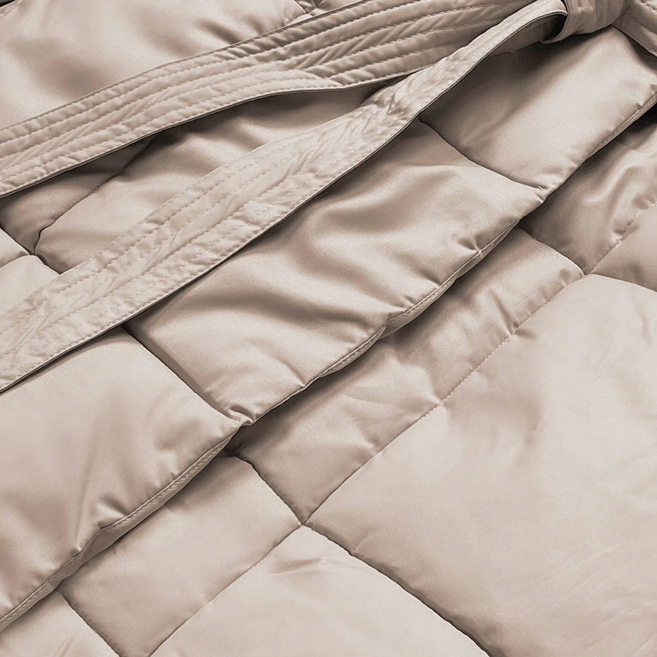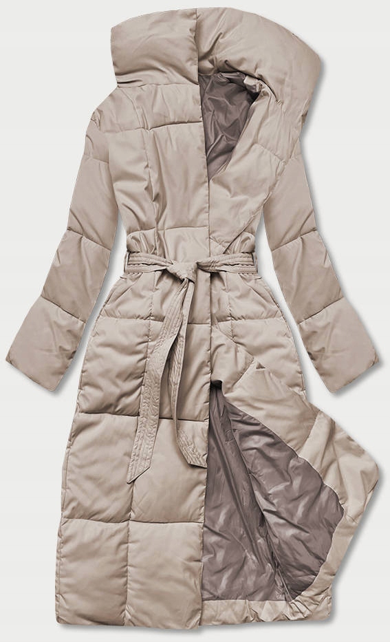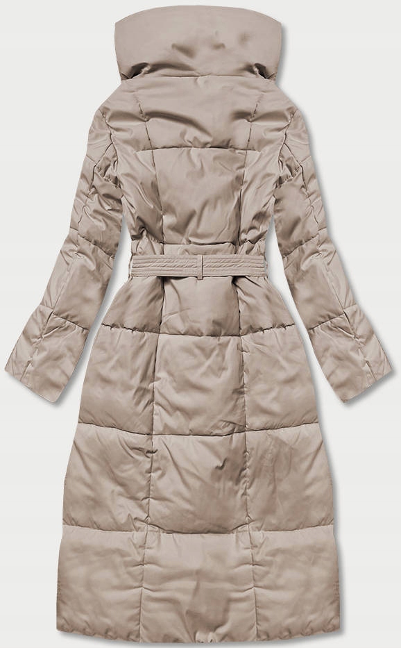 ZIMOWY PŁASZCZ DAMSKI Z PASKIEM JASNY BEŻ (2M-061) - XL (42)