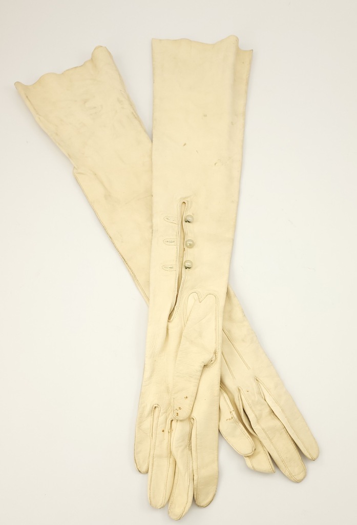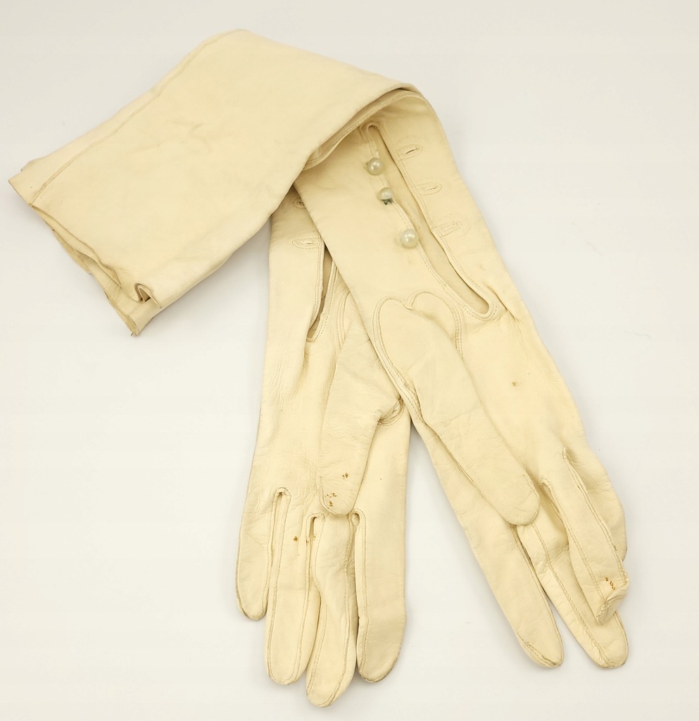 Przedwojenne długie rękawiczki z cieniutkiej skórki.