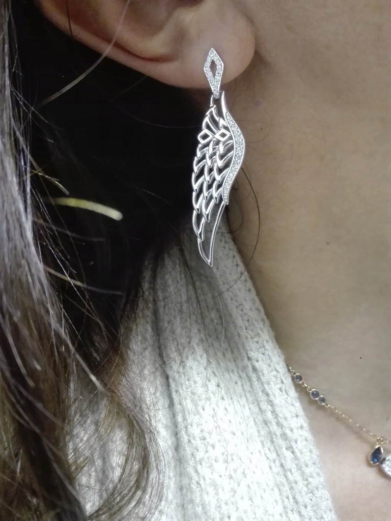 Długie srebrne kolczyki skrzydła z cyrkoniami pudełko