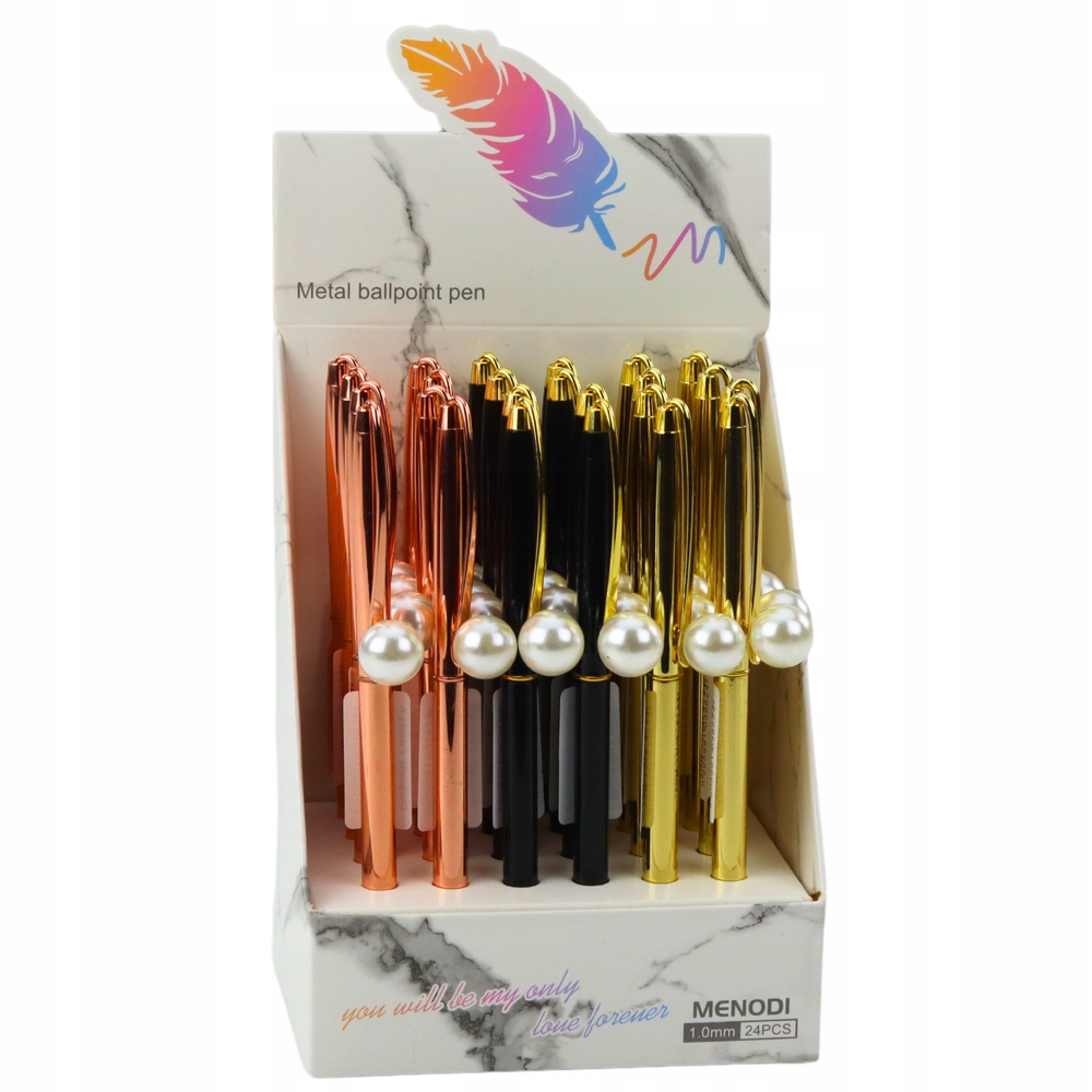 Elegancki metalowy długopis z ozdobnym wykończeniem w kształcie dużej perły to wyjątkowy dodatek do biura, szkoły czy codziennego użytku. Luksusowy design łączy w sobie klasykę i nowoczesność, przyciągając wzrok swoim wyjątkowym wyglądem. Długopis wyróżnia się smukłą konstrukcją i dbałością o detale, a jego wykończenie w formie dużej perły nadaje mu subtelnego i eleganckiego charakteru.