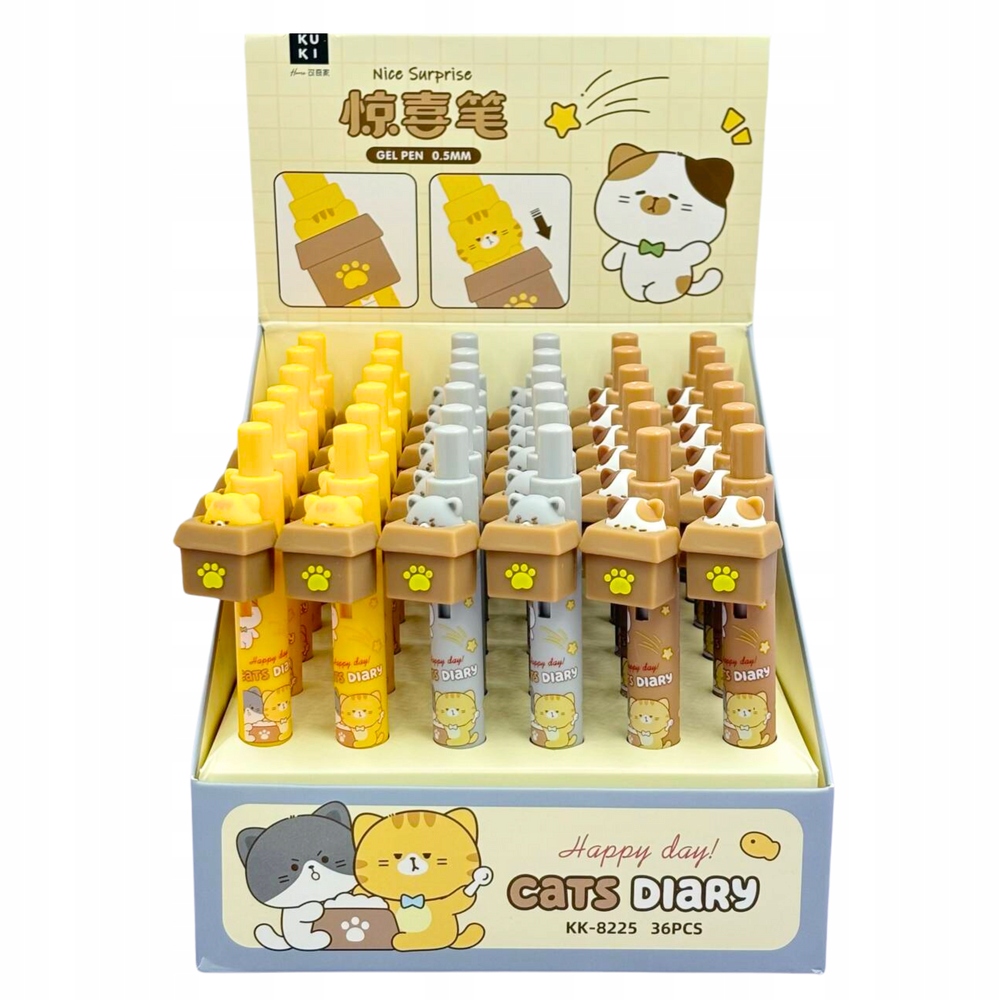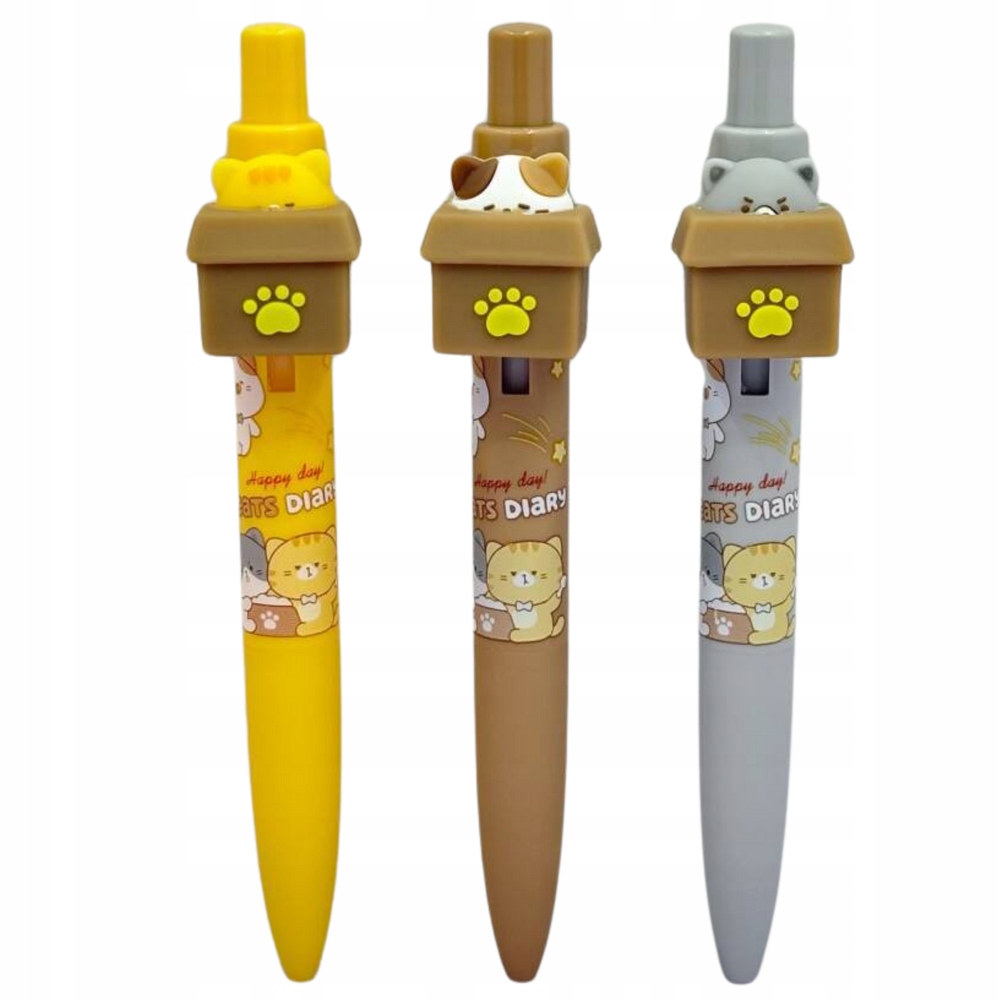 Największą atrakcją jest mechanizm klikający ? po naciśnięciu górnej części długopisu nie tylko wysuwa się wkład, ale również wyłania się kotek z pudełka. To zabawne i funkcjonalne rozwiązanie sprawia, że każde pisanie staje się przyjemnością. Ciekawe wzory i pastelowe kolory sprawiają, że to również świetny pomysł na prezent lub element wyprawki szkolnej.