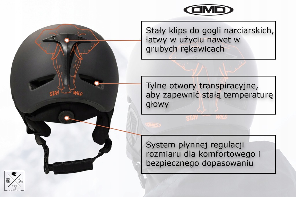 Kask śnieżny, dziś jest to fundamentalny element własnego bezpieczeństwa na zboczach, ponieważ chroni głowę przed uderzeniami. W przypadku upadku zmniejsza ryzyko kontuzji o 50%. Kask DMD został zaprojektowany z najnowocześniejszych materiałów i przy udziale najnowocześniejszych technologii, dzięki czemu, tym samym spełnia wymagania najnowszych standardów bezpieczeństwa, oferując wysoki poziom ochrony i komfortu. Lekki, smukły i doskonale dopasowany. Kask DMD z jego opływowym kształtem zapewnia noszącemu elegancką sylwetkę i jest dostępny w 18 różnych grafikach. Synonim wysokiej jakości, bezpieczeństwa i designu, DMD przykłada najwyższą wagę do każdej fazy wdrożenia, aby uzyskać produkt o wyjątkowej niezawodności i stylu.