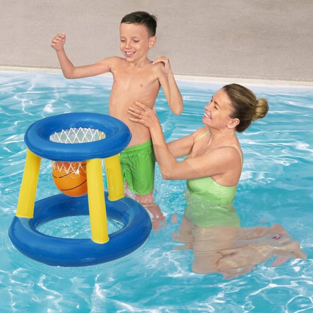 Zestaw do koszykówki firmy Bestway to idealne sposób na rozrywkę w basenie zarówno dla dzieci jak i dla dorosłych. Zestaw zawiera nadmuchiwany kosz i nadmuchiwaną piłkę, które swobodnie unoszą się na wodzie. Intensywne kolory zachęcają do zabawy i ułatwiają trafianie do kosza. Nadmuchiwany kosz do koszykówki zapewni świetną zabawę dla całej rodziny lub grona przyjaciół. Sprawdzi się zarówno w basenie jak i nad morzem czy jeziorem.