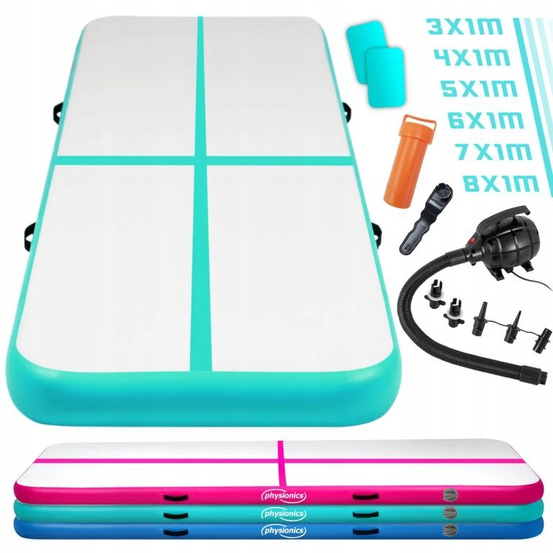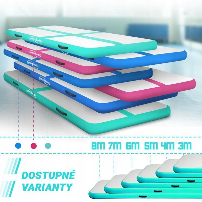 Dmuchana mata gimnastyczna to uniwersalne narzędzie treningowe odpowiednie do szerokiej gamy zajęć sportowych, takich jak gimnastyka, cheerleading, parkour, sztuki walki, sporty szkolne i inne Istnieje również możliwość korzystania z niego w basenie Mata ta wykonana jest z materiału dwuściennego, którego główną właściwością jest zachowanie kształtu i stabilności konstrukcji pod wpływem zewnętrznego nacisku i uderzenia.