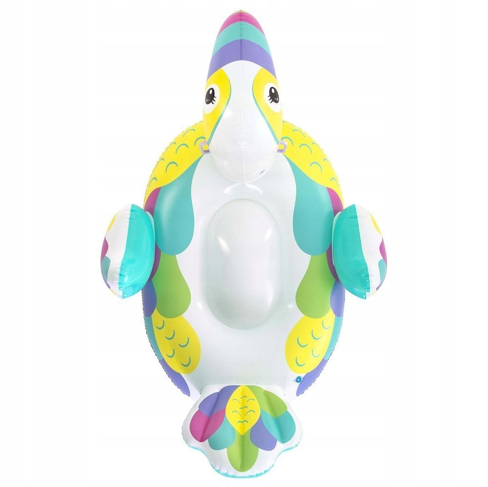 Dmuchany materac tukan to wspaniały sposób na letni odpoczynek. Piękna kolorystyka oraz niebanalny kształt z pewnością zachwycą wszystkich najmłodszych miłośników wodnego odpoczynku. Materac przeznaczony jest dla dzieci powyżej 3 roku życia. Urozmaici on letnie zabawy oraz pozwoli się zrelaksować. Tukan posiada dwa stabilne uchwyty umiejscowione po dwóch stronach oraz szerokie siedzisko co zapewnia stabilność oraz wygodę w użytkowaniu. To dmuchane akcesorium do pływania sprawdzi się w każdych warunkach zarówno nad morzem, jeziorem jak i basenie. Jest wykonany z wytrzymałego materiału PVC odpornego na uszkodzenia oraz promienie słoneczne.