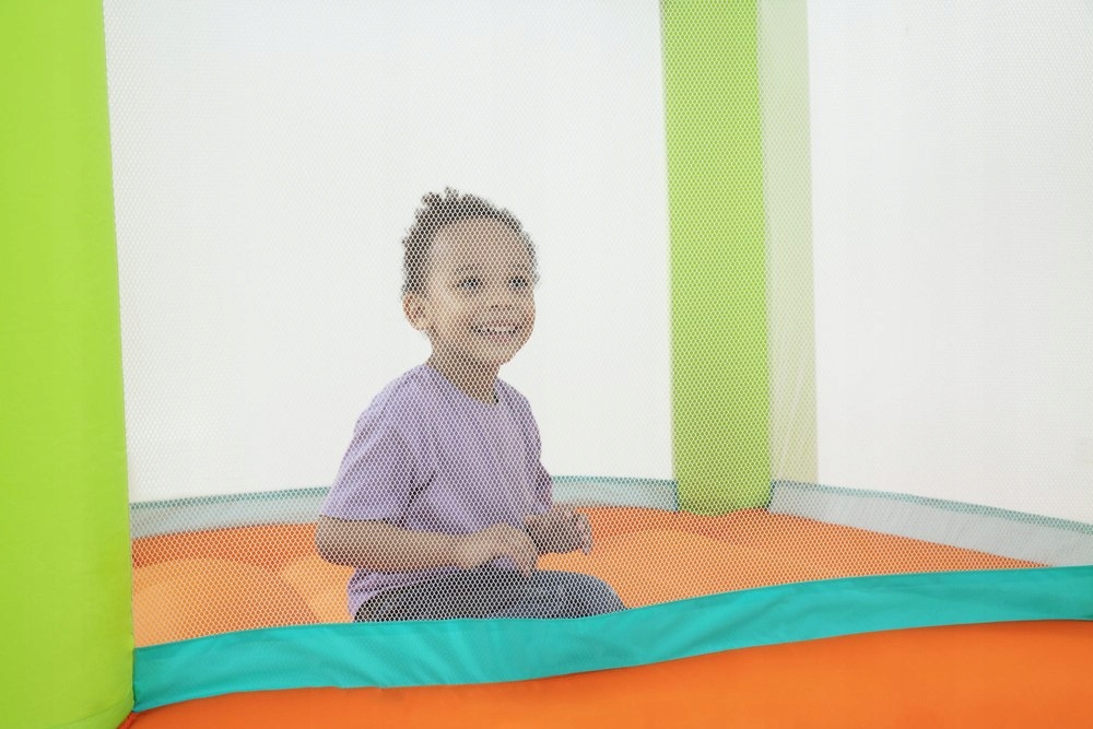 Dmuchany zamek to wspaniała atrakcja dla wszystkich dzieci, które ukończyły 3 rok życia, został on zaprojektowany tak, aby zachęcić je do wspólnej zabawy. Dzięki grubej nadmuchiwanej podstawie i nadmuchiwanym bokom z siatki, Twoje dzieci mogą skakać i bawić się w bezpiecznych warunkach. Solidna konstrukcja pozwala wytrzymać podskakiwanie, skakanie, toczenie i przewracania się. Przezroczyste ścianki pozwolą Ci kontrolować co dzieje się w środku i będziesz mógł cały czas mieć oko na malucha. Mały otwór znajdujący się w centralnej części dmuchańca ułatwia dzieciom wchodzenie i wychodzenie. Oprócz doskonałej zabawy maluchy będą mogły rozwijać zdolności motoryczne, koordynację wzrokowo-ruchową i zręczność. Dzieci uczą się świadomości przestrzennej, budują mięśnie i zyskują siłę podczas skakania i zabawy.