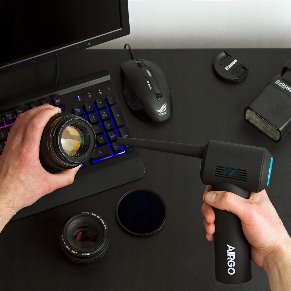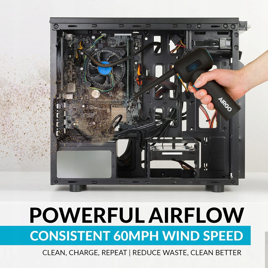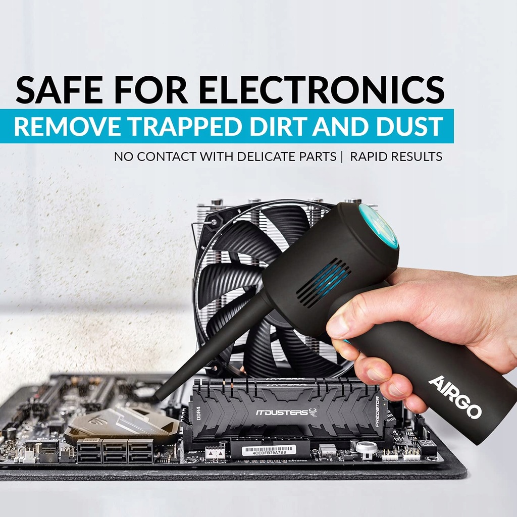 ZAPROJEKTOWANE DLA TECHNOLOGII: Musimy dbać o nasze ukochane urządzenia technologiczne, aby się nie przegrzewały i nadal działały płynnie. AirGo został specjalnie zaprojektowany do czyszczenia komputerów stacjonarnych, telewizorów, telefonów komórkowych, konsol, laptopów, obwodów elektrycznych i elektroniki. Posiada matową czarną, antystatyczną obudowę, która zapewnia lepszą ochronę.
