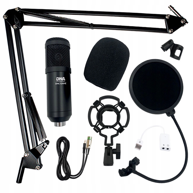 DNA DNC GAME to desktopowy zestaw mikrofonowy, wnbspktoerego skad wchodzą mikrofon pojemnościowy wraz znbspkoszem antywstrząsowym, ramię wysięgnikowe przykręcane do blatu, filtr przeciwwietrzny zakładany na mikrofon oraz popfiltr na bdquogęsiej szyjce tłumiący powstawanie tzw. zgłosek wybuchowych inbspprzewoed XLRjack. Komplet doskonale sprawdza się wnbspdomowym studiu nagrań, szeroko pojętym homerecordingu, stacjach radiowych, anbsptakże podczas nagrywania podcastoew, tekstoew lektorskich inbspinstrumentoew akustycznych. Szerokie pasmo przenoszenia, wysoka czułość inbspjednokierunkowość mikrofonu sprawiają, żenbsprejestrowany obraz audio jest bardzo dokładny. Wysięgnikowe ramię znbspszerokim zakresem ruchoew pozwala precyzyjnie ustawić mikrofon względem źroedła dźwięku wnbspkażdych warunkach.