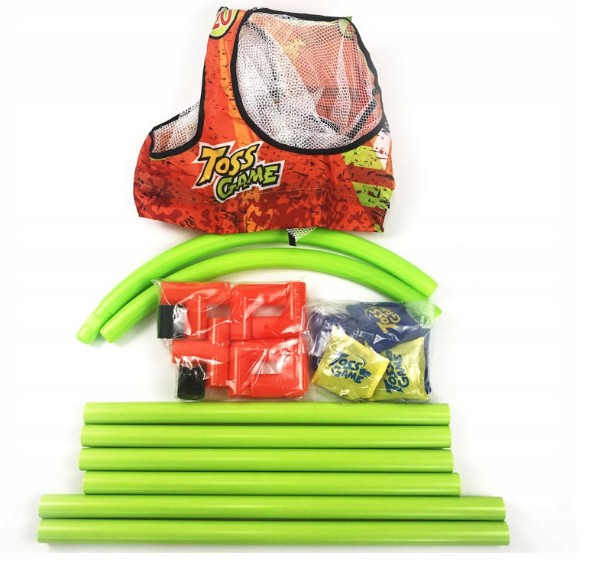 Zestaw do gry w rzutki to sportowa gra dla małych i dużych, która sprawdzi się podczas wspólnie spędzanego czasu z rodziną. Zabawa polega na wrzucaniu woreczków do celu. Zestaw składa się z plastikowych rurek, które należy ze sobą połączyć i nałożyć na to matę, na której są pola z punktami. Zabawa polega na tym kto trafi, kto najwięcej punktów uzyska.