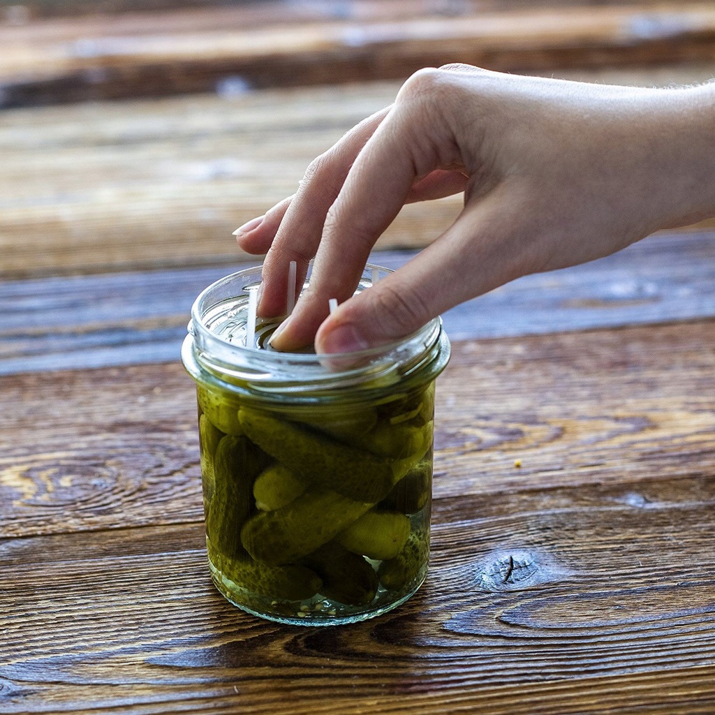 Docisk do słoików pozwoli twoim domowym przetworom zachować znacznie dłużej wszystkie ich walory smakowe i zdrowotne. Konstrukcja docisku pozwala utrzymać warzywa czy owoce pod poziomem zalewy, co doskonale zabezpiecza je przed negatywnym wpływem powietrza znajdującego się pod zakrętką. Słoiki należy wypełniać tak, by docisk po włożeniu opierał się o zakrętkę.