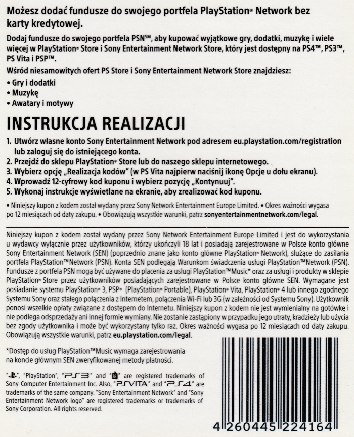 Doładowanie PlayStation Network 50 zł