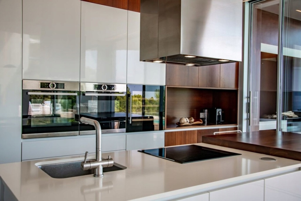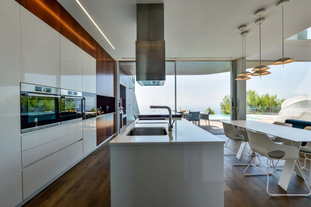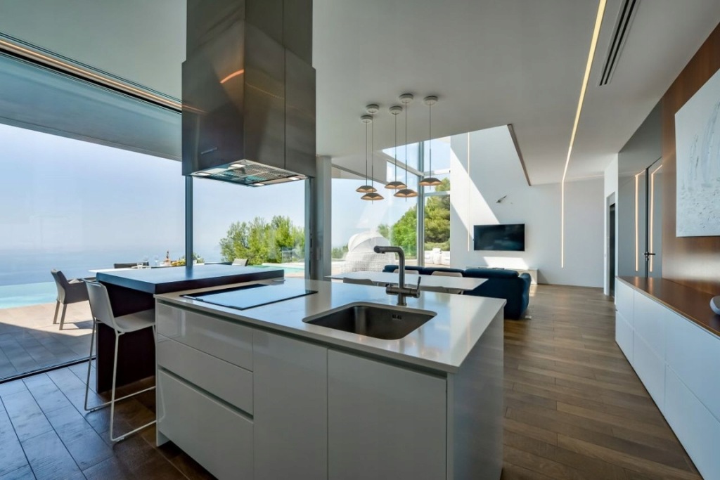 Wnętrze domu jest wykonane w stylu śródziemnomorskiego minimalizmu. Bardzo elegancki, dobrze przemyślany i wyposażony we wszystkie nowoczesne technologie w budownictwie, dekoracji i oszczędzaniu energii. Do wykończenia użyto wysokiej jakości naturalnych materiałów.