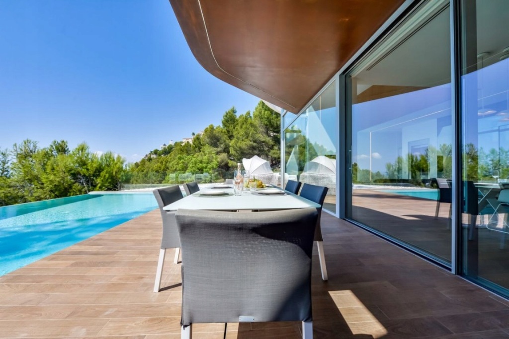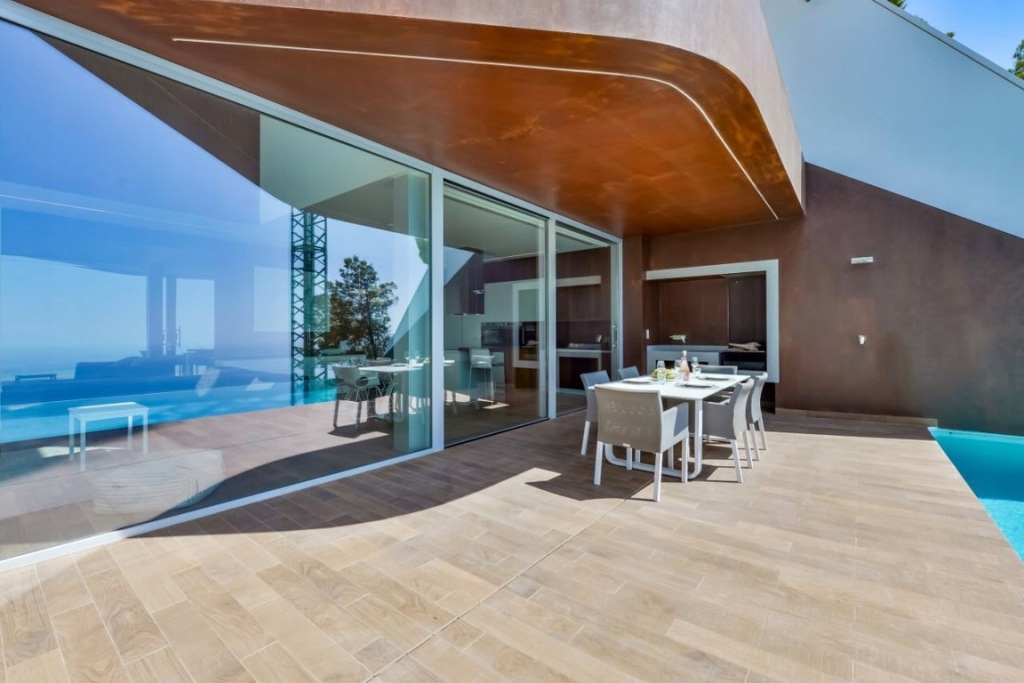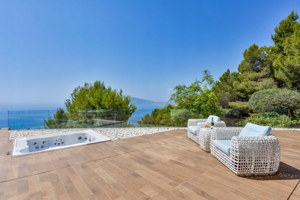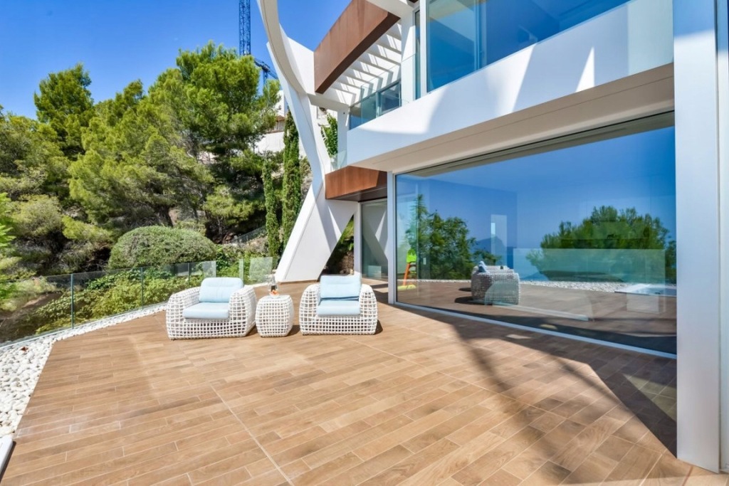 Luksusowa willa z fantastycznym panoramicznym widokiem na morze z każdego piętra. Ta niesamowita willa znajduje się w Altea Hills, jednym z najbardziej prestiżowych obszarów Costa Blanca z całodobową ochroną. Willa ma powierzchnię 388 m2 i jest zbudowana na działce o powierzchni 908 m2, specjalnie zaprojektowanej, aby zmaksymalizować kąt widzenia z otwartych tarasów i rozłożyć całą fasadę domu w kierunku morza, abyś mógł cieszyć się fantastycznymi widokami ze wszystkich części domu.