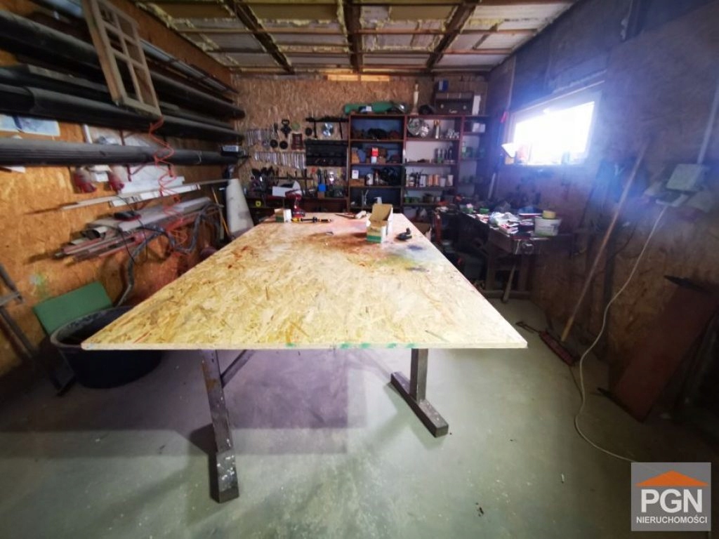 Obecnie na dole znajduje się pokój z aneksem kuchennym, łazienka oraz pokój dzienny a całość ogrzewana jest tradycyjnym piecem grzewczym. Na piętrze otwarta przestrzeń z możliwością stworzenia dodatkowej antresoli. Na parterze przy zmianach możliwość stworzenia salonu z wyjście na ogród. Grube ponad 50cm mury, nowe plastikowe okna dają doskonałą izolacje termiczna zarówno w upalne lato jak i w zimową porą. Na ogrodzonej działce znajduje się przydomowa oczyszczalnia ścieków, oraz budynek pełniący obecnie funkcje warsztatu około 60m2. Dodatkowo z tyłu działki mamy wylane fundamenty.