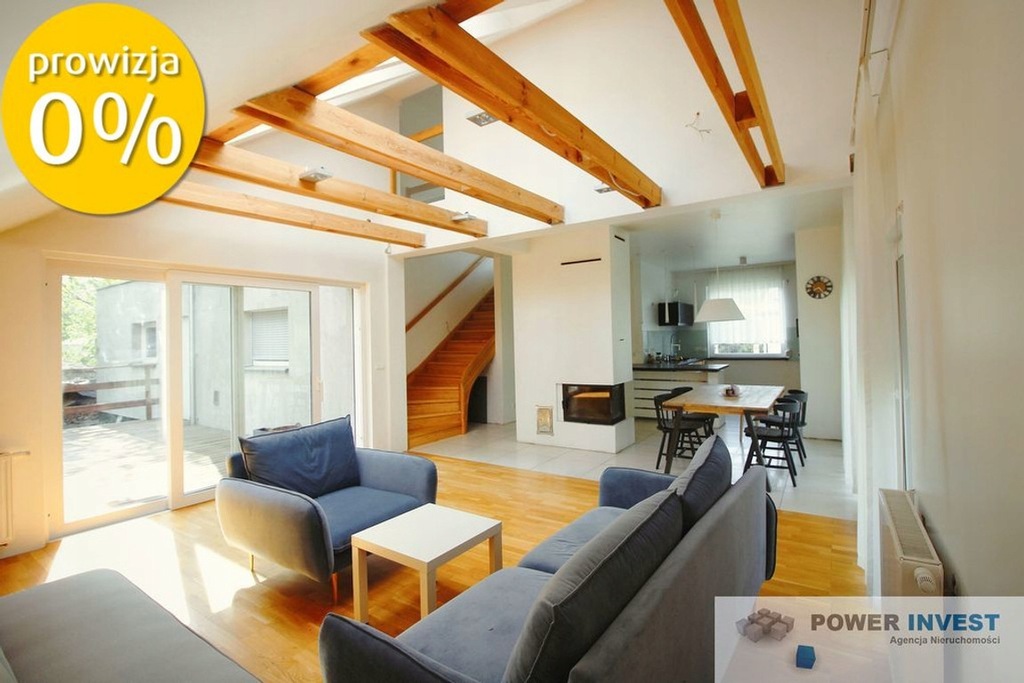 - przestronny salon z kominkiem, jadalnią i wyjściem do ogrodu oraz na drewniany taras (30m2)