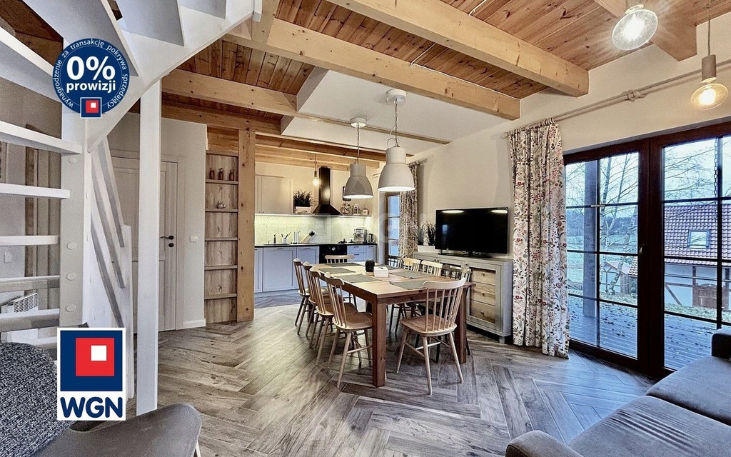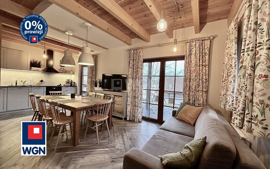 Na sprzedaż dom całoroczny w zabudowie bliźniaczej o powierzchni użytkowej 63,99 m2 zlokalizowany w kompleksie domków tworzących osiedle Kaszubska Ostoja. Nieruchomość oferuje niezapomniane doznania w otoczeniu pięknych lasów, malowniczych jezior i błogiego spokoju. To idealne miejsce, aby oderwać się od zgiełku codzienności i zanurzyć się w harmonii natury. Nieruchomość posadowiona na działce o numerze ewidencyjnym 511/74 o powierzchni 465 m2.