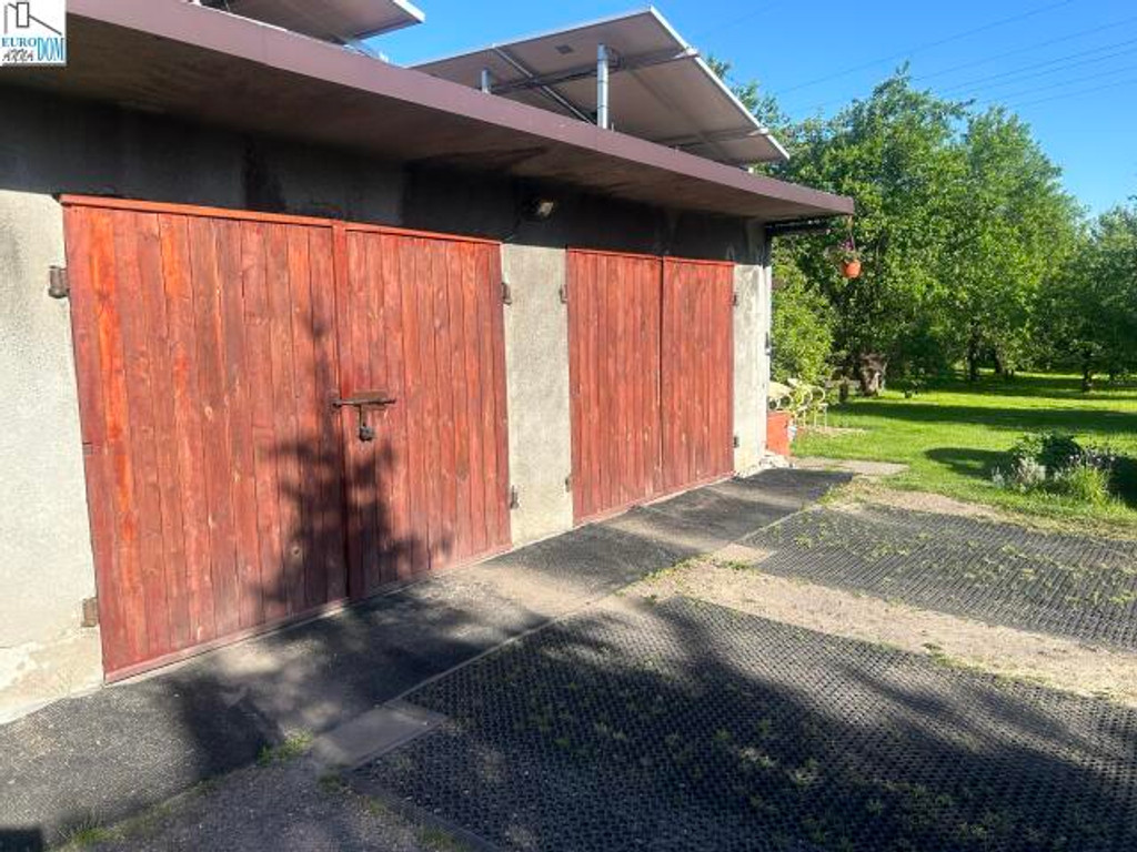 Atutem jest duży ogród z sadem z drzewami owocowymi oraz 2 wolnostojące garaże .
