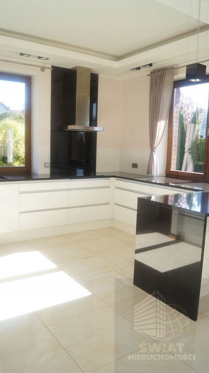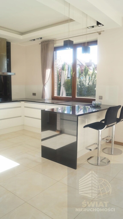 Podłogi: Parter z drewna dębowego i gresu, piętro z gresu. Schody na piętro wykończone drewnem dębowym. Kuchnia: Indywidualny projekt z wyposażeniem AGD renomowanych marek.