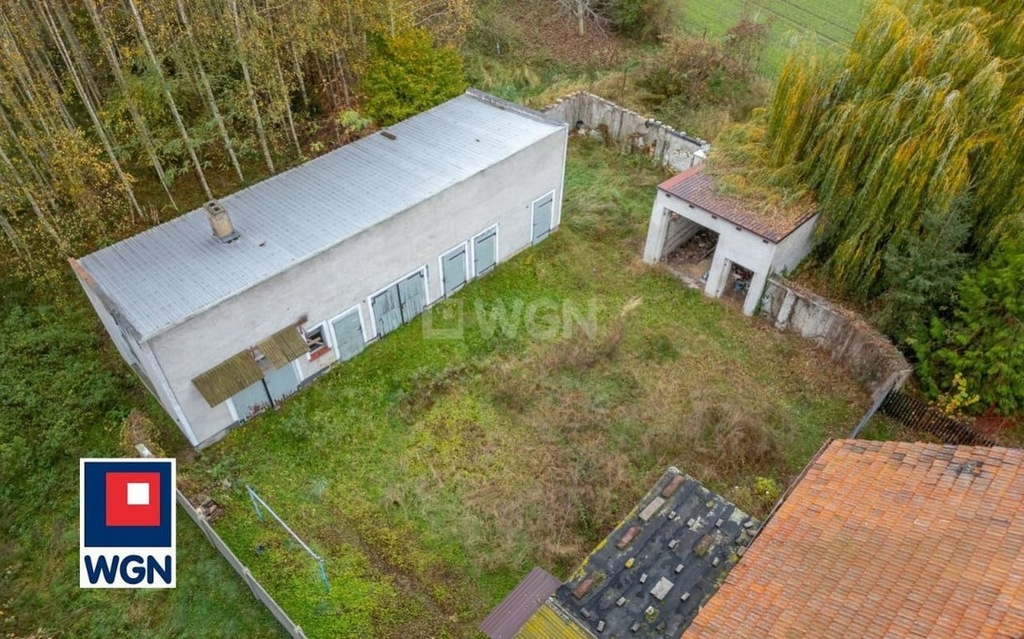 Na działce znajdują się dwa budynku gospodarcze z kilkoma osobnymi pomieszczeniami.