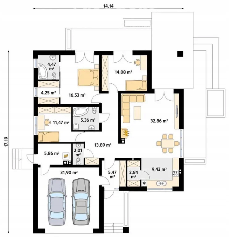 Na powierzchnię użytkową 128,52 m2 składają się: