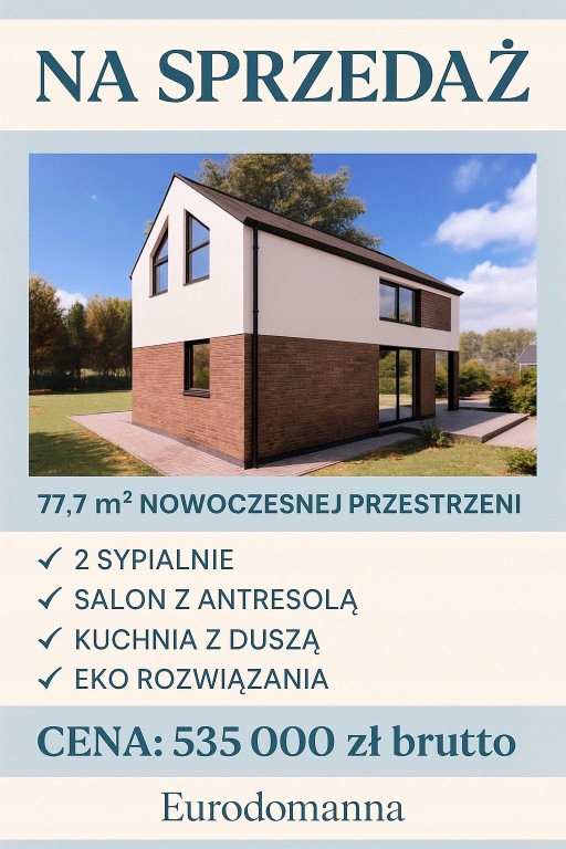 •Powierzchnia: 43 m² parter i 34,7 m² piętro