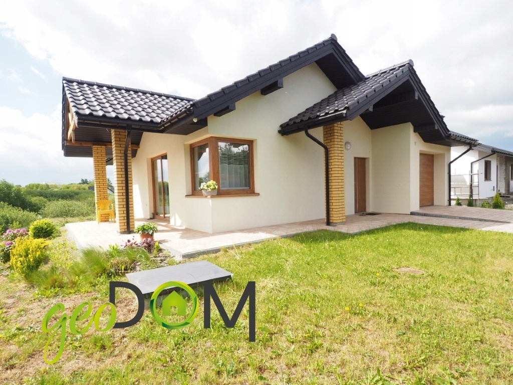 - Salon z aneksem kuchennym z wyjściem na taras, 2 pokoje, łazienka, wiatrołap, komunikacja, kotłowania, garaż z bramą na pilota.
