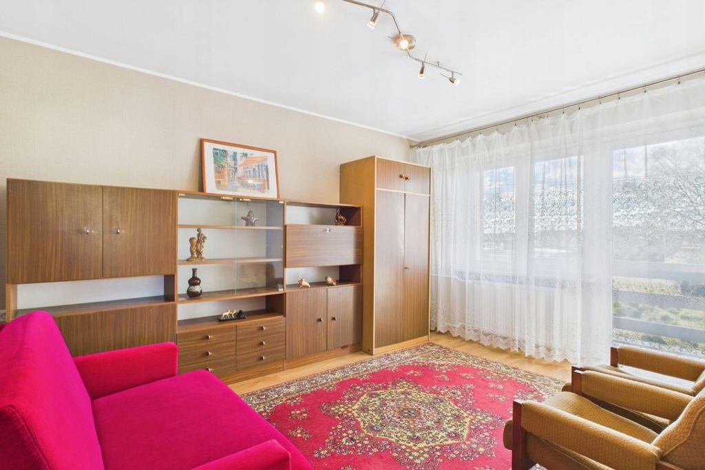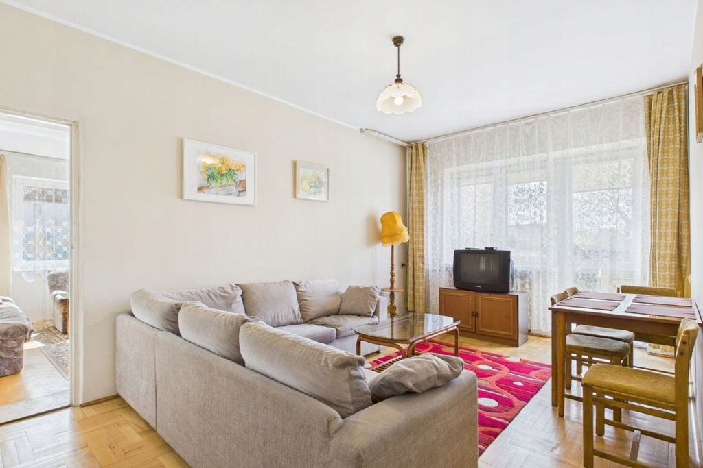 Salon idealny do spotkań towarzyskich i rodzinnych aktywności. Ściany gładzone, w bardzo dobrym stanie, na podłogach naturalne drewno - parkiet do ewentualnego odświeżenia, Remontu wymaga w zasadzie tylko przedpokój (sosnowa boazeria i zabudowa) i kuchnia.