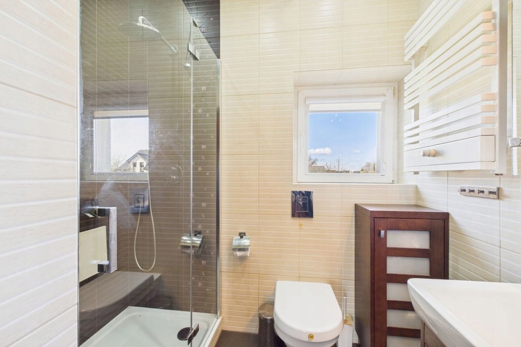 łazienkę z oknem, z prysznicem (+ siedzisko)