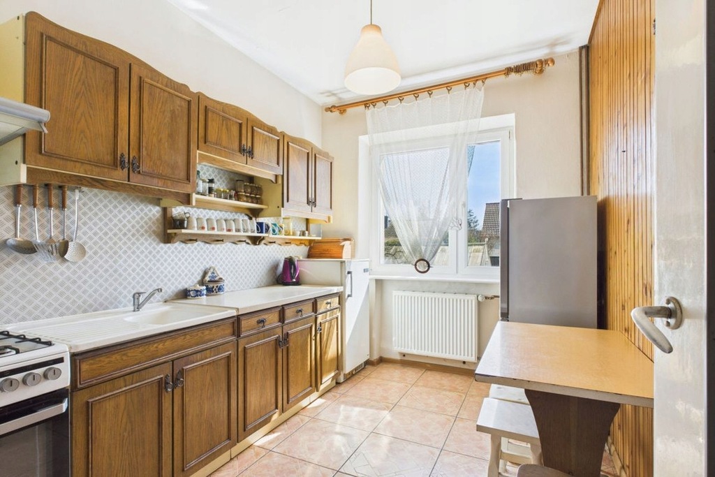 kuchnię z oknem (zabudowa starszego typu z kuchenką gazową)