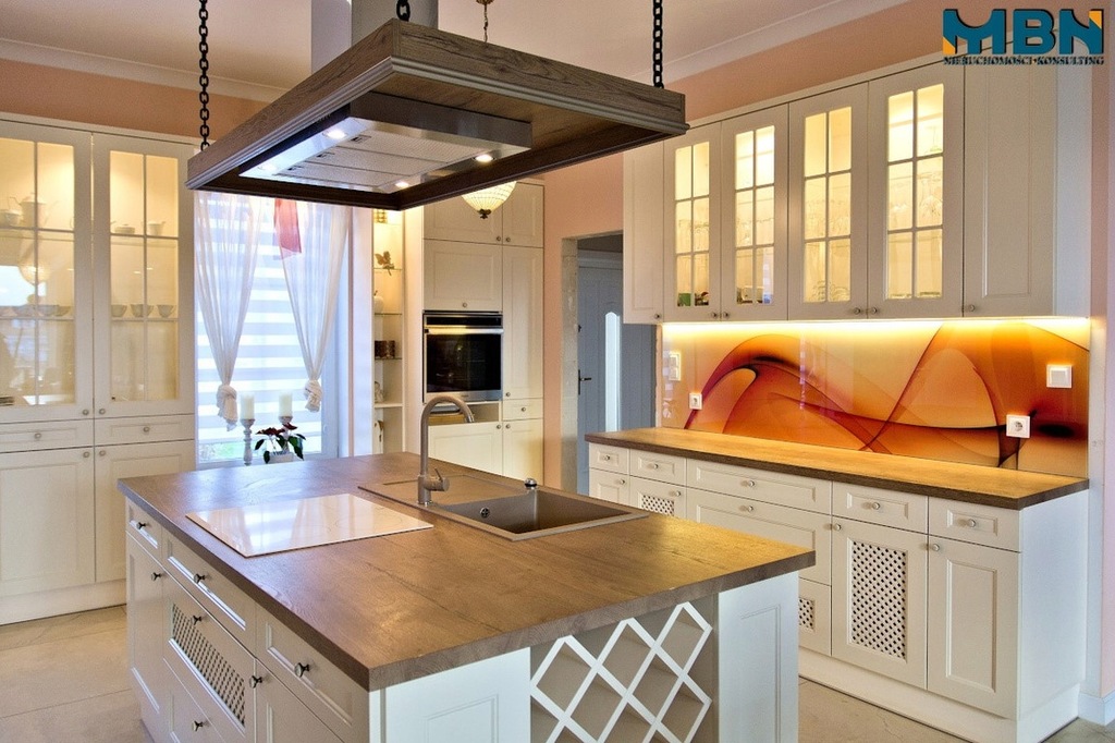 aneks kuchenny o pow. ok. 18,64 m2 z wyspą kuchenną, wyposażony w piekarnik, płytę indukcyjną i zlewozmywak