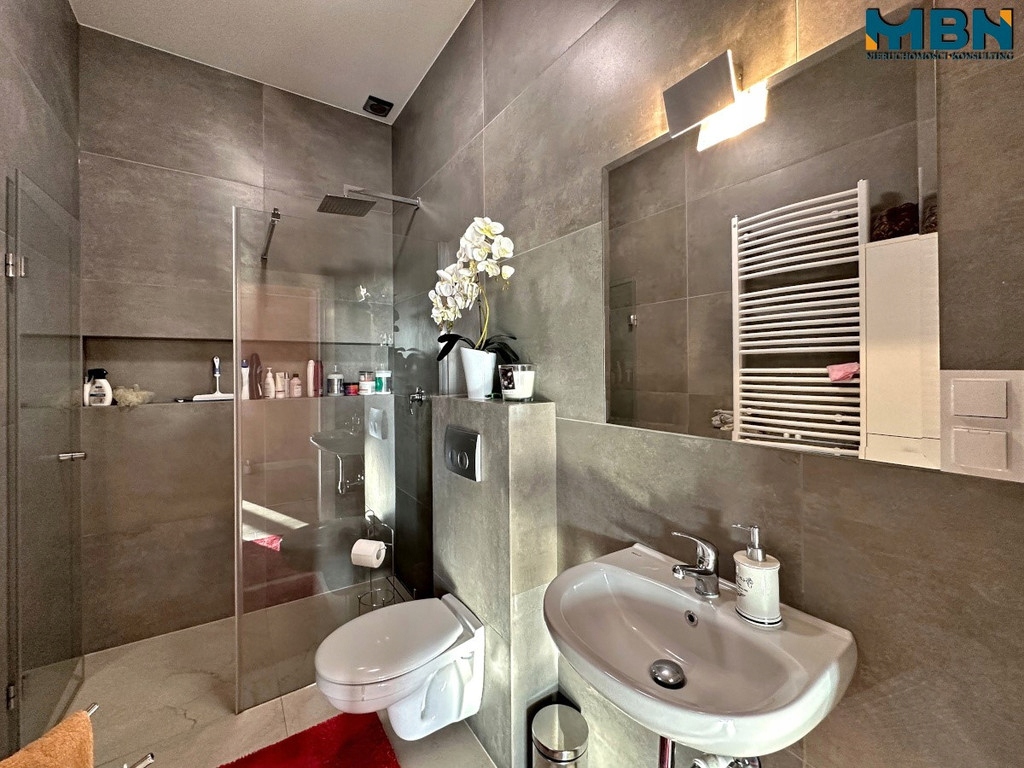 łazienka z wc o pow. ok. 4,03 m2 wyposażona w kabinę pryszniową, umywalkę i wc