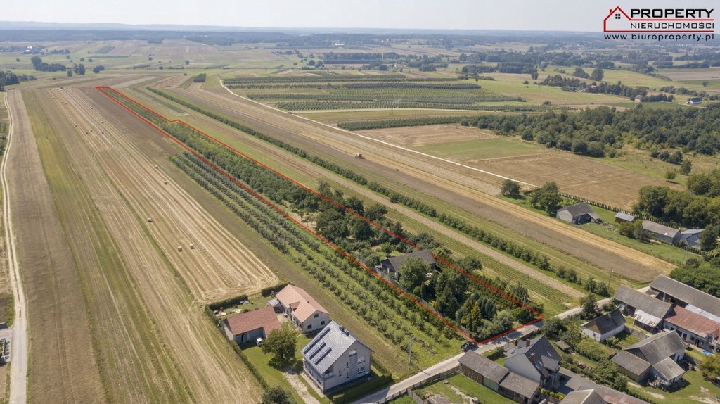 Nieruchomość usytuowana na działkach o numerach 264 i 511/2 o łącznej powierzchni 1,39ha (klasy ziemi IIIb i IVa). Posesja częściowo ogrodzona, zagospodarowana. Na działce znajduje się zagospodarowany sad śliwkowy przynoszący zyski składający się z 5 odmian śliw (RANA, AMERS, NAJBOLJA, LEPOTICA, PREZYDENT) dodatkowo czereśnie, jabłka, orzechy, maliny, jeżyny, porzeczka, agrest.