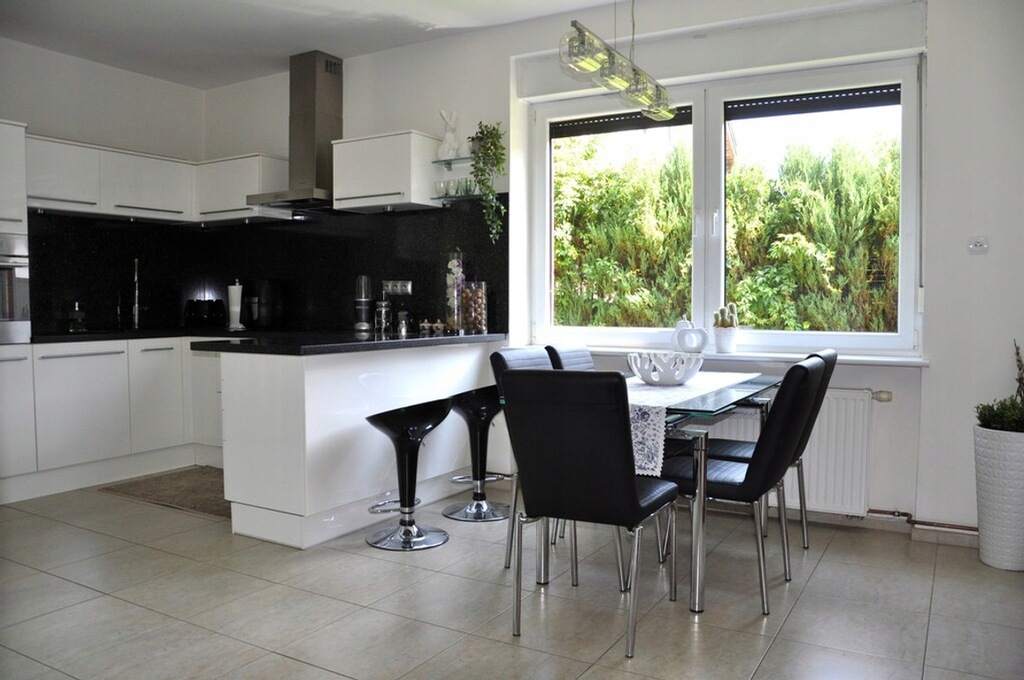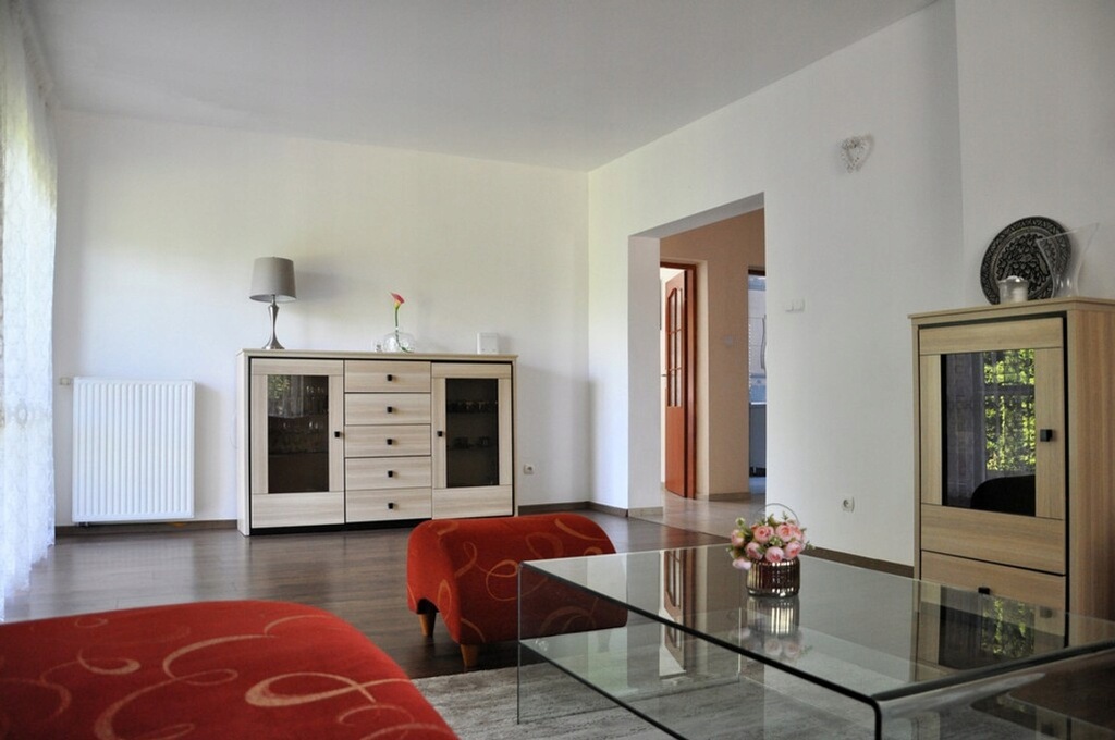 PARTER: przestronny salon z wyjściem na taras i ogród, kuchni (meble na wymiar), pokój z przeznaczeniem na gabinet, łazienka oraz kotłownia i pralnia. Podłoga panele i płytki.