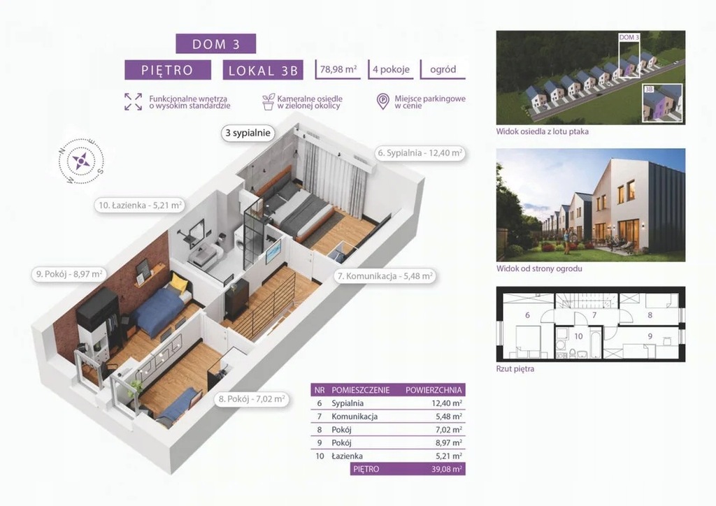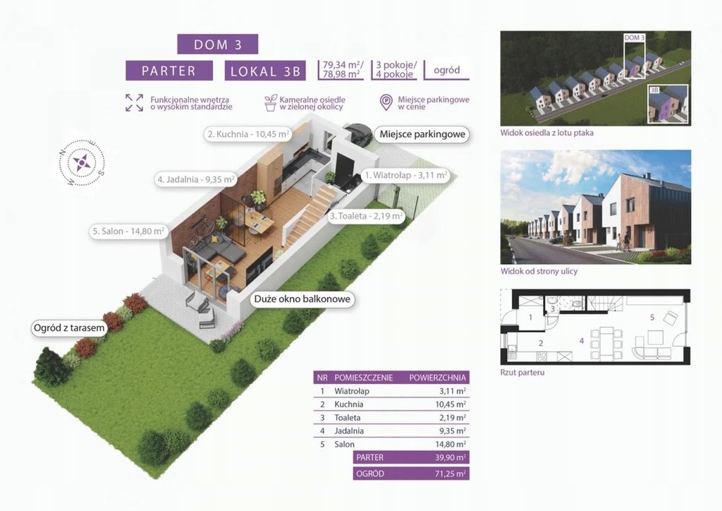 - Osiedle zlokalizowane jest w bardzo bezpieczniej okolicy, blisko lasu i terenów zielonych,