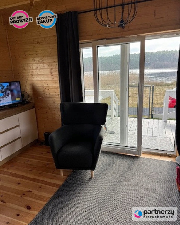 Domek letniskowy drewniany (ocieplony, całoroczny) o powierzchni 70m2 wybudowany w 2022r. na działce 315 m2. położonej 30 m od jeziora Wysoka. Działka objęta dzierżawą (umowa na 10 lat z możliwością przedłużenia).