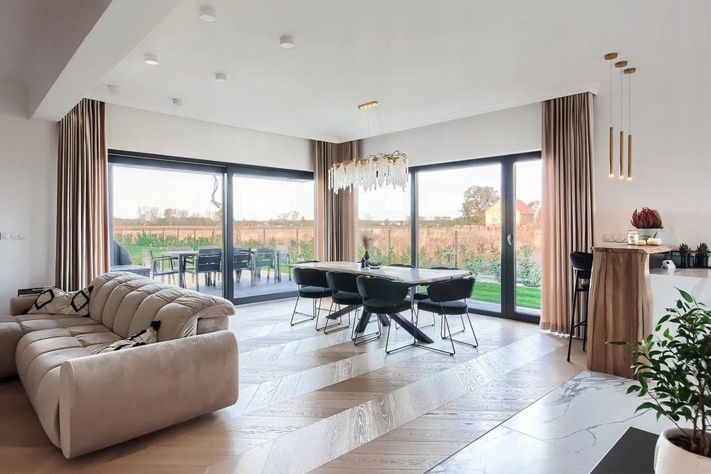 Dom utrzymany jest w wyjątkowym standardzie wykończenia, charakteryzującym się elegancją, smakiem i starannością w każdym detalu. Każdy element wnętrza został zaprojektowany z dbałością o styl i użyto najwyższej jakości materiałów, eliminując konieczność dodatkowych inwestycji finansowych.