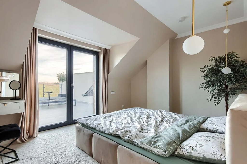 Przestronne Pokoje: Na piętrze czekają na Was trzy sypialnie oraz dodatkowa garderoba.